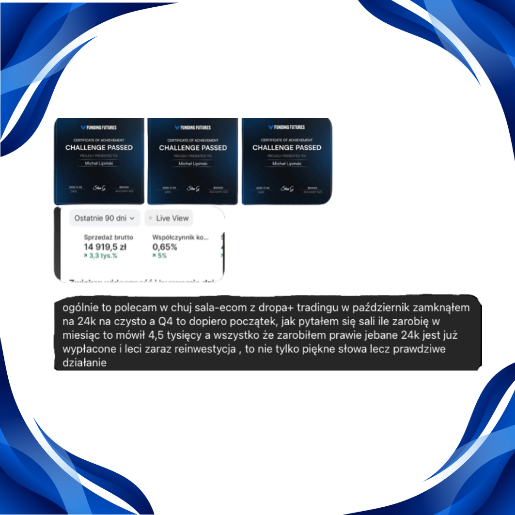 Potem przyszedł wrzesień i październik. Totalny dołek. Próbowałem flipów, dropshippingu, dosłownie wszystkiego – i nic nie działało. Frustracja sięgnęła dna. Ale w listopadzie 2024 powiedziałem sobie jedno: